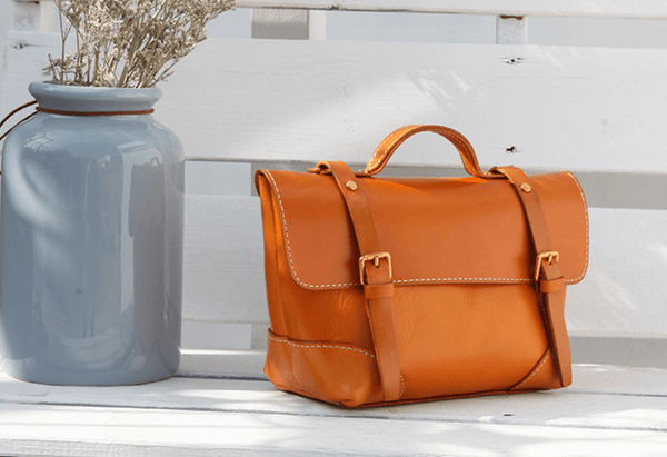 The ultimate durable and 2-way opening leather briefcase. It's made of full-grain vegetable-tanned leather.